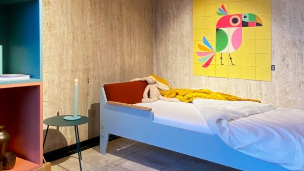 Het ROOS bed gaat helaas uit de collectie van VRIENDEN. Daarom is het showroom model met matras nu te verkrijgen voor €1300,- ipv €1700,-! Het betreft het lichtblauwe bed met roest-rode gestoffeerd hoofdeinde.