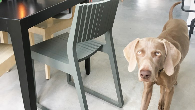 “De meubelen van VRIENDEN zijn stijlvol, het zijn ‘jonge’ producten met een speels karakter. Bankje JAN met het touw dat in de gele verf is gedoopt, het rode touwtje van DIRK… het zijn mooie details waarmee het merk zich onderscheidt.”